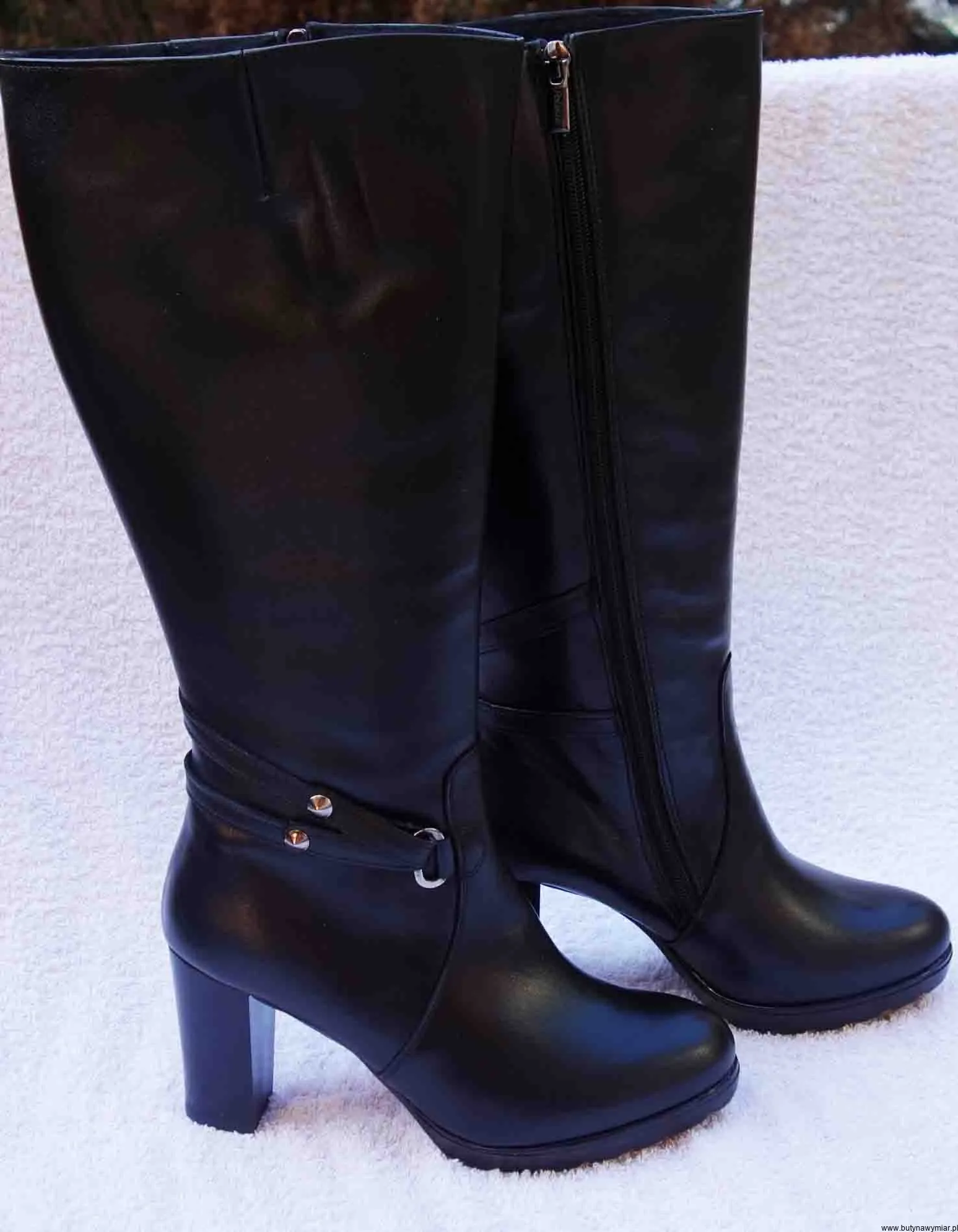 Wysokość cholewki mierzymy z tyłu łydki od początku pięty do wymaganej wysokości 19 i 30 cm.